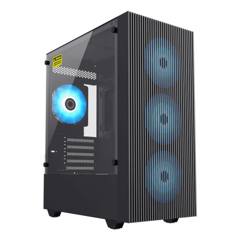 Design premium et visibilité. Le panneau latéral en verre trempé met en valeur votre configuration et l'éclairage ARGB multicolore intégré, parfait pour personnaliser l'esthétique de votre PC. La structure en métal, plastique et verre trempé assure robustesse et durabilité.