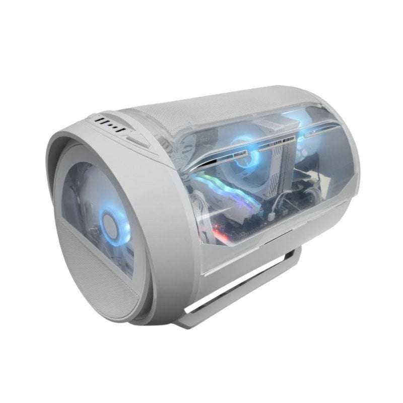 Design Turbine Cylindrique Unique. Le MC-CYLON se distingue par une esthétique inspirée de l'aviation et une structure cylindrique, offrant une présentation visuelle qui valorisera n'importe quel setup gaming ou créatif exigeant. Cette véritable pièce centrale combine innovation, fonctionnalité et compacité.