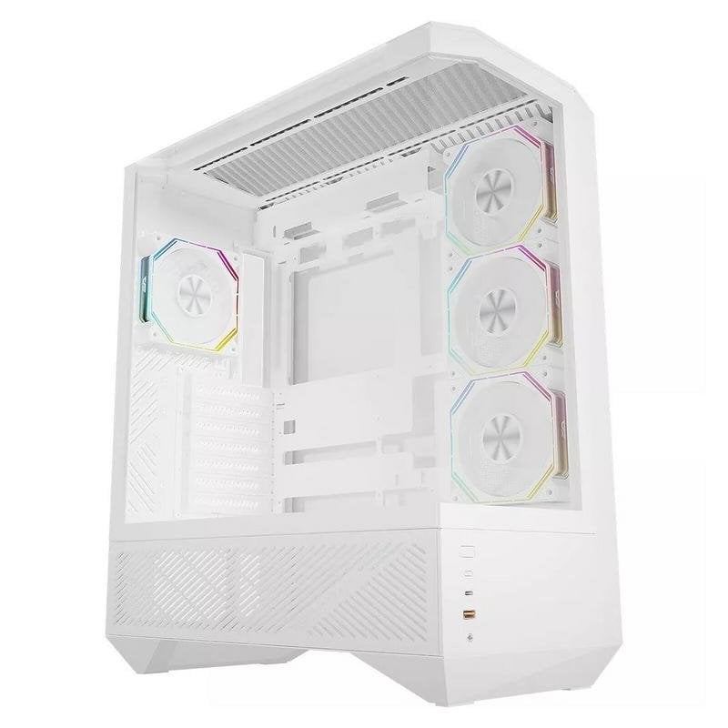 Fonctionnalités premium pour passionnés : Montage sans vis, façade blanche élégante, filtres anti-poussière faciles d'accès et ports modernes dont un USB 3.1 Type-C en façade pour une connectique rapide. Installation aisée avec slots PCI multiples et emplacements pour disques SSD/HDD cachés pour un câble management soigné.