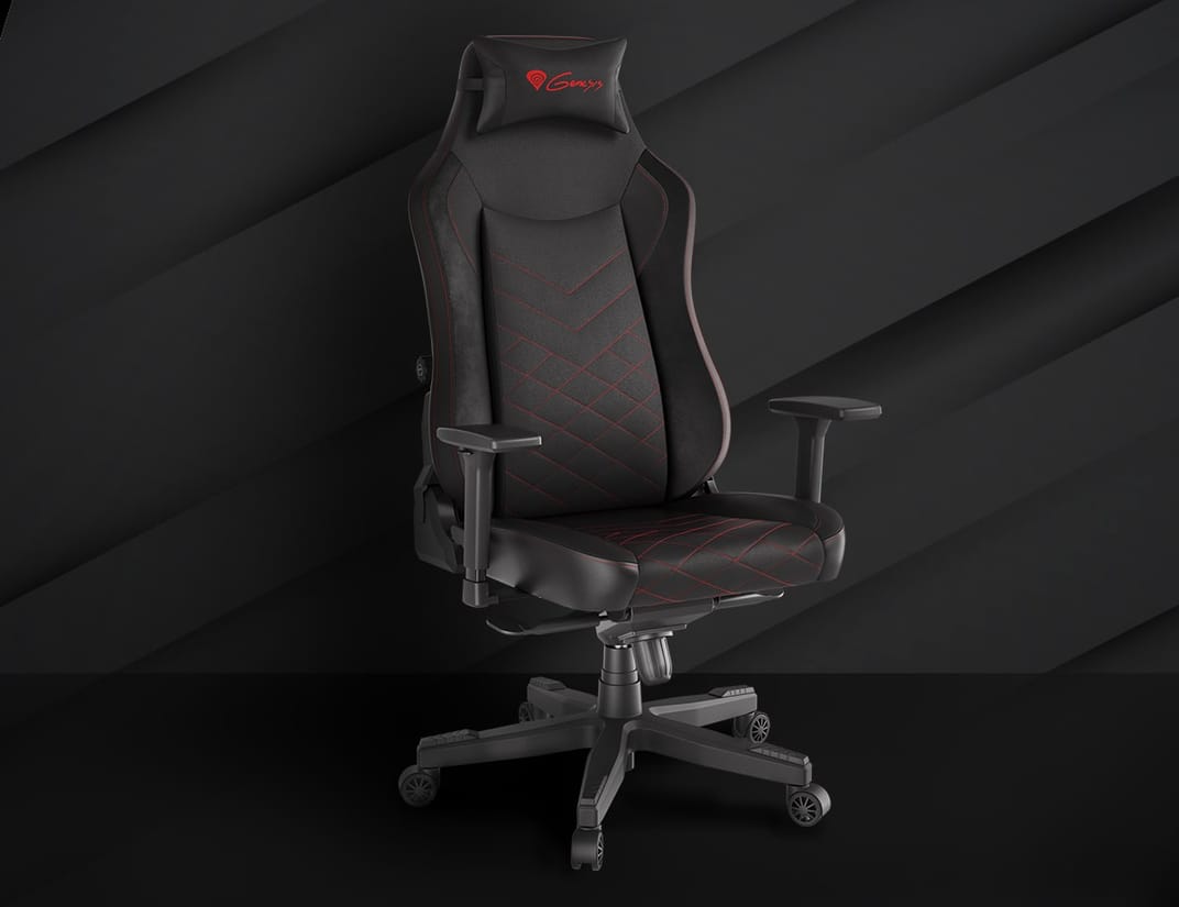CONCEPTION MAÎTRE. Des matériaux de haute qualité et une attention portée à chaque détail nous ont permis de créer une chaise qui ravira aussi bien les débutants que les joueurs plus avancés. Son superbe aspect noir combiné à ses coutures rouges et à ses renforts en matériau agréable au toucher rendent cette chaise extrêmement élégante, ce qui en fait un complément parfait à toute position de jeu.