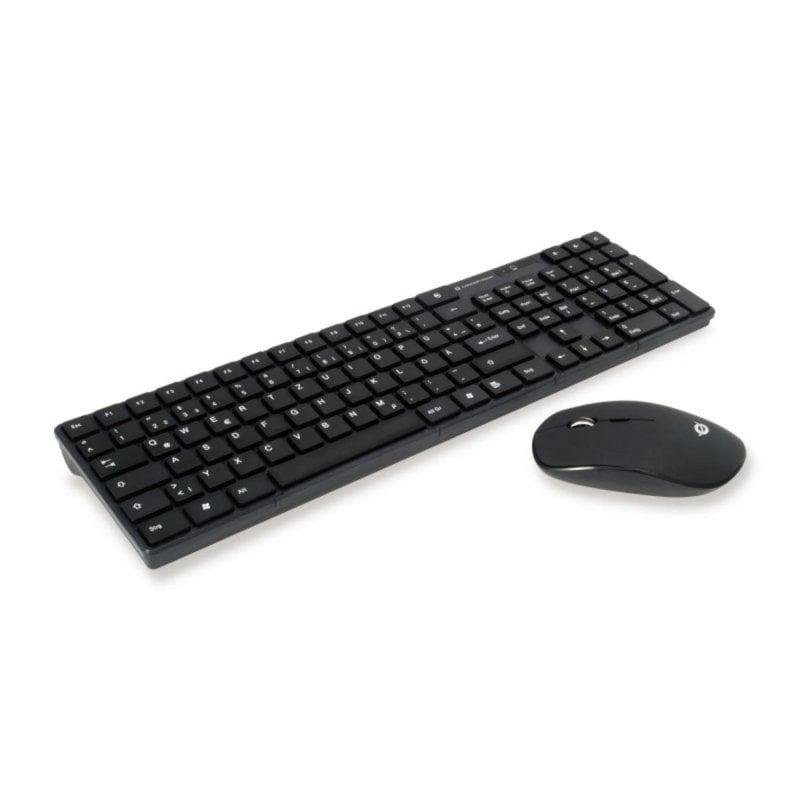 Clavier Conceptronic ORAZIO01DE sans fil QWERTZ allemand avec souris optique noire