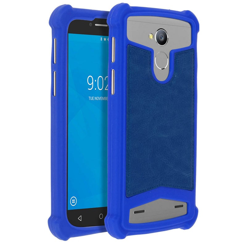 Coque en silicone effet cuir bleu Avizar pour smartphones de 5" à 5,3"