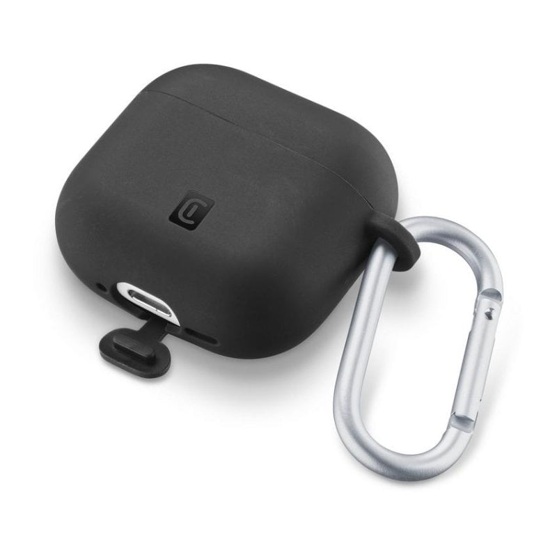 Funda Cellularline Bounce AirPods Pro 3 silicona negra con gancho resistente