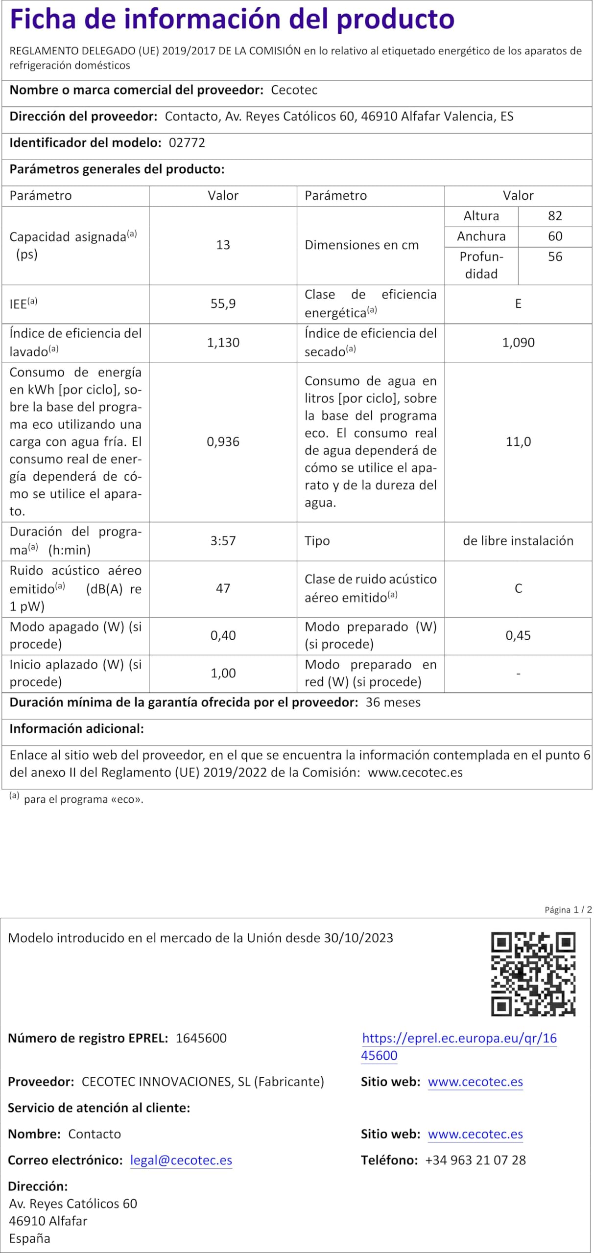 Caractéristiques Lavavajillas Cecotec Bolero Aguazero 6100