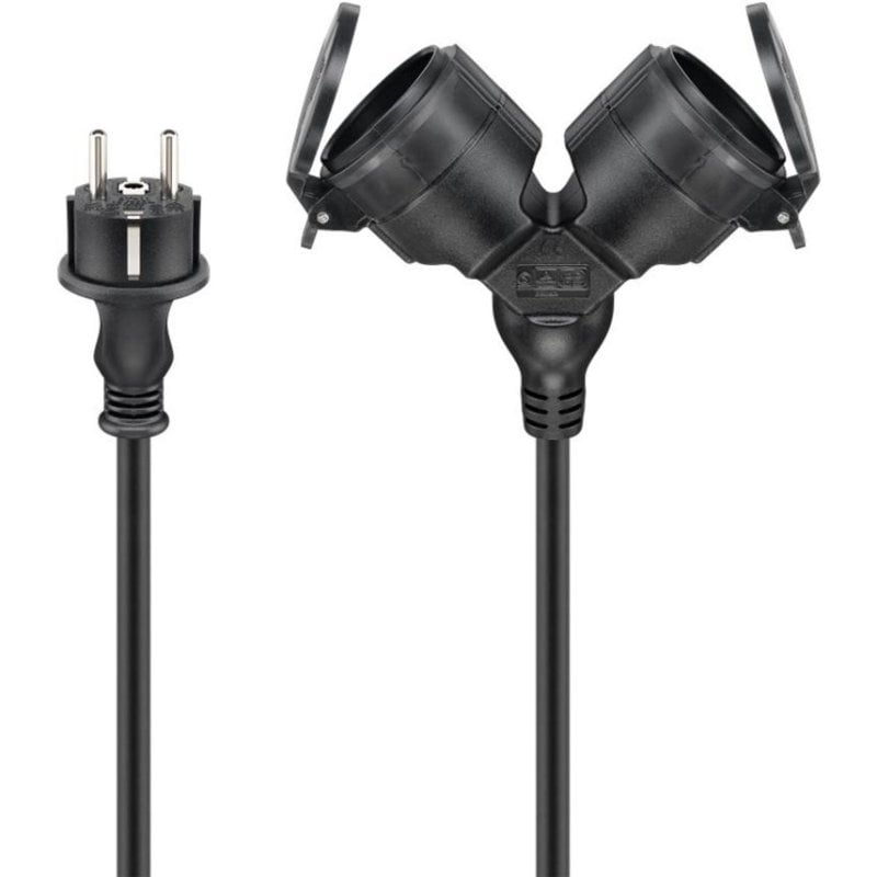 Son câble PVC noir de haute qualité garantit une durabilité accrue et une installation flexible, tandis que sa capacité de charge de 16 A - 250 V assure la compatibilité avec la plupart des équipements électriques lourds ou gourmands en énergie. Facile à utiliser : branchez simplement l’extrémité CEE 7/7 mâle à l’alimentation principale et raccordez jusqu’à deux appareils sur ses sorties CEE 7/3 femelles.