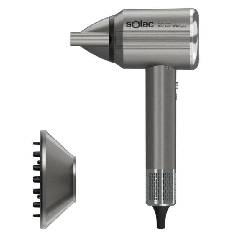 - Le Solac Blast Ionic 1600 Digital est conçu pour répondre aux exigences des utilisateurs les plus pointus, qu'ils soient professionnels de la coiffure ou particuliers exigeants. Son moteur digital brushless de 110 000 tours/minute délivre un flux d'air puissant et constant, permettant un séchage nettement plus rapide qu'un sèche-cheveux classique, tout en préservant la santé du cheveu.