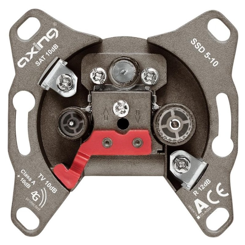 Puis-je utiliser cette prise pour tous mes appareils audiovisuels ? Oui, la prise Axing SSD 5-10 est conçue pour supporter les connexions SAT, TV et Radio, couvrant la plupart des besoins en matière de diffusion et de réception de signaux.