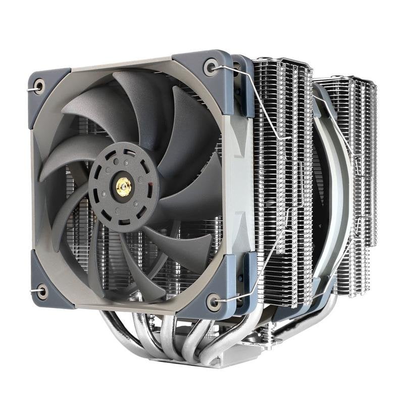 Dissipation thermique avancée. Profitez d'une capacité de refroidissement surdimensionnée grâce à la double tour, aux 5 conduits heatpipes en cuivre de 8 mm et à deux ventilateurs performants (140 mm + 120 mm) qui combinent silence et flux d'air massif jusqu’à 95,5 CFM.